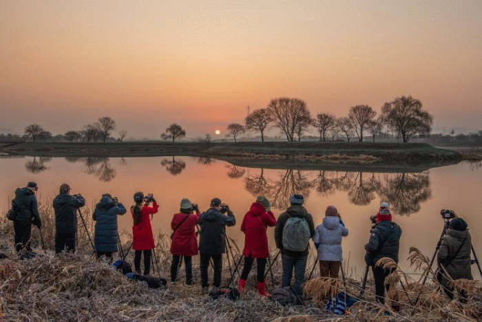 남도풍경연구소 소속 사진작가들이 동섬에서 떠오르는 해를 촬영하고 있는 모습.(사진 제공-나주시)