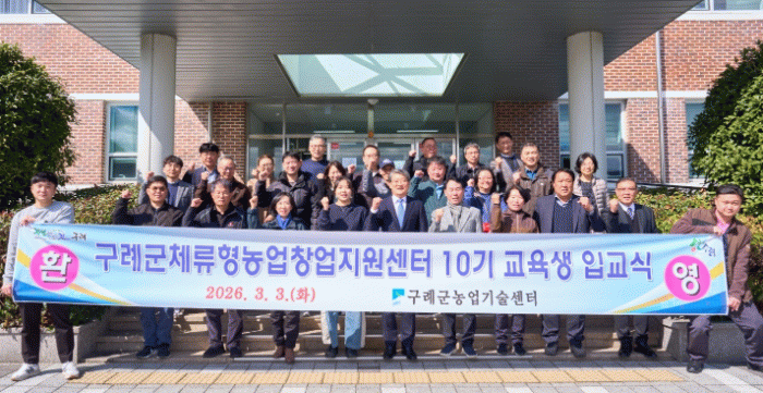 [한국저널뉴스]전남 구례군은 지난 3일 체류형농업창업지원센터 대강당에서 2026년 10기 교육생 입교식을 개최했다고 밝혔다.