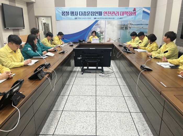 [한국저널뉴스]고흥군은 지난 4일 군청 재난종합상황실에서 ‘봄철 행사 다중운집 인파 안전관리 대책회의’를 개최하고, 4월 녹동항 드론쇼를 비롯한 대규모 행사의 안전사고 예방과 대응체계 강화 방안을 논의했다.