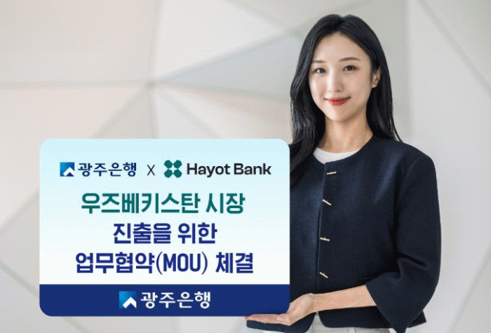 [한국저널뉴스]광주은행은 지난 4일, 우즈베키스탄의 디지털 기반 상업은행 JSC Hayot Bank와 ‘중앙아시아 금융시장 진출 기반 마련 및 상호 금융시장 이해 증진을 위한 전략적 업무협약(MOU)’을 체결했다고 밝혔다.