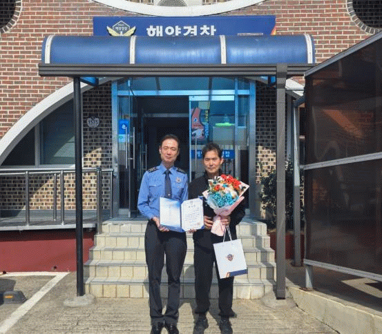 [한국저널뉴스] 완도해양경찰서는 지난달 20일 전남 장흥군 신동항 인근 해상에서 발생한 침수선박 사고 현장에서 승선원 4명을 구조한 김천권 선장에게 감사장을 수여했다.