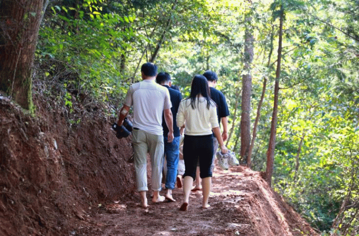 보성군, 읍면별 1개소 ‘맨발산책길’ 조성 본격화_보성읍 망제산에 조성한 ‘맨발 산책길’을 주민들이 걷고 있다