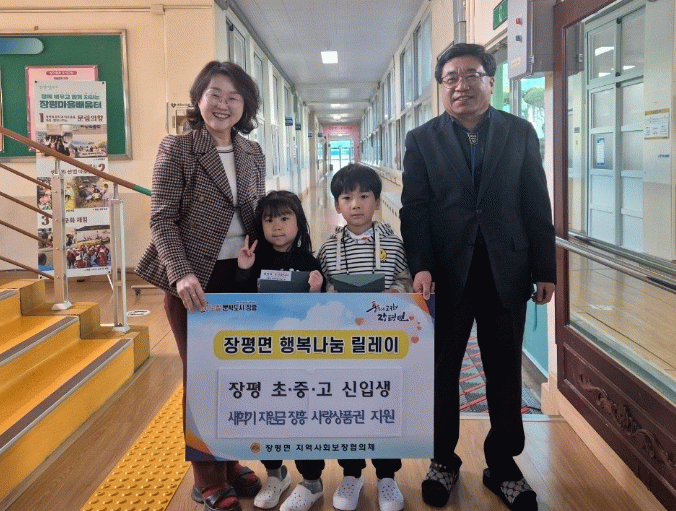 [한국저널뉴스]장흥군 장평면 지역사회보장협의체(공동위원장 한성수·신영자)는 지역 초·중·고등학교에 입학하는 신입생 17명을 대상으로 ‘두근두근 새학기, 새출발 준비 지원사업’을 추진했다고 밝혔다.