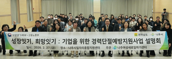 나주여성새로일하기센터는 최근 관내 45개 기업과 6개 유관기관이 참석한 가운데 ‘2026년 경력 단절 예방 지원 사업 홍보 및 조직문화 개선 설명회’를 개최했다고 6일 밝혔다.
