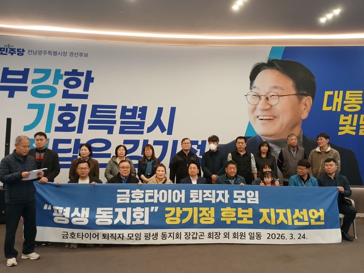 [한국저널뉴스] 금호타이어 평생동지회(회장 장갑곤 전.노조위원장)는 24일 더불어민주당 강기정 전남광주통합특별시장 예비후보 지지를 선언했다.