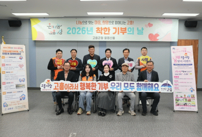 [한국저널뉴스] 고흥군은 지난 26일 군청 팔영산홀에서 3월 ‘착한 기부의 날’ 행사를 개최했다. 이번 행사에는 3개 분야, 6개 팀 10명이 참여해 총 2,200만 원의 소중한 기부금이 모였다.