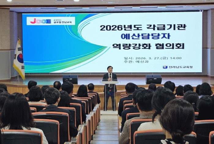 [한국저널뉴스]전라남도교육청이 27일 전남교육청교육연구정보원에서 ‘2026년 예산업무 담당자 역량강화 협의회’를 열어, 상반기 신속집행 추진과 재정 운영 전략을 공유했다.