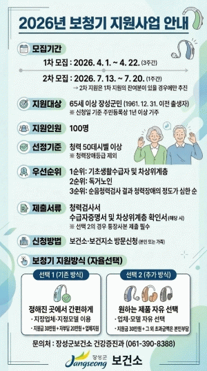 [한국저널뉴스]장성군이 올해부터 어르신 보청기 지원사업에 ‘선택형 지원 방식’을 도입한다.