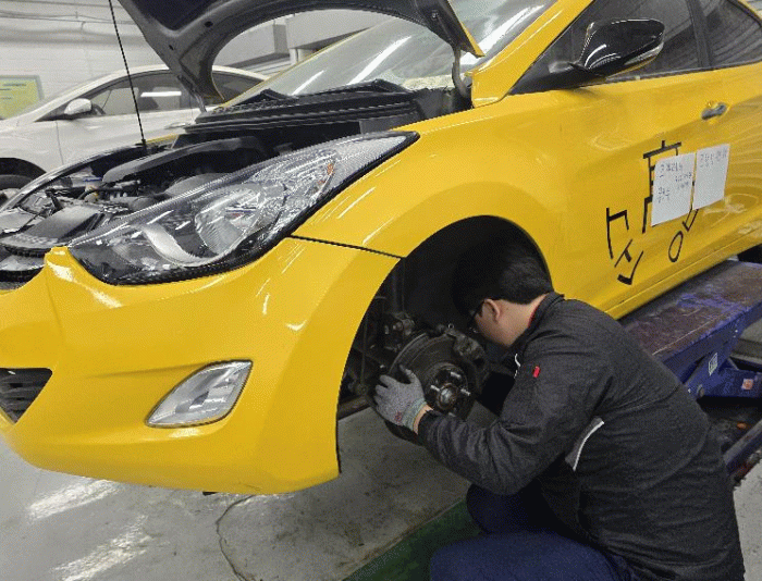 1. 순천공업고 학생이 자동차정비 직종 훈련을 하고 있다.