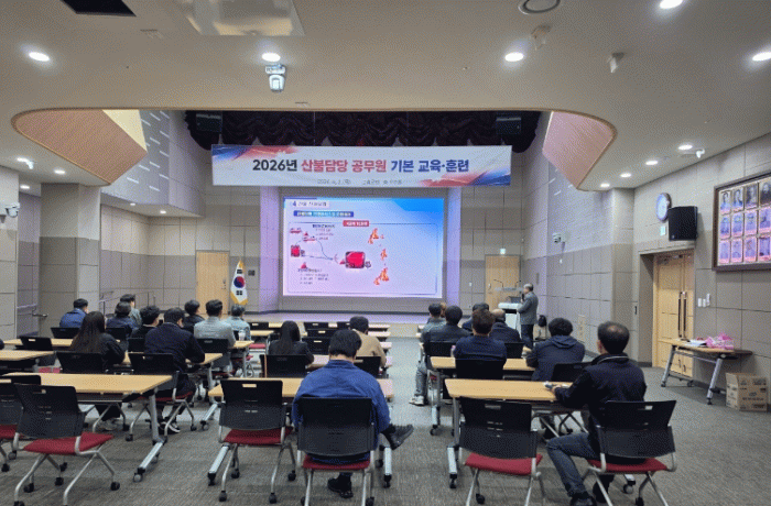 [한국저널뉴스]고흥군은 지난 2일 군청 우주홀에서 군·읍면 산불담당 공무원 35명을 대상으로 ‘2026년 산불담당 공무원 기본 교육·훈련’을 실시했다고 밝혔다.