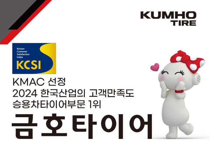 [한국저널뉴스] 금호타이어(대표 정일택)가 한국능률협회컨설팅(KMAC)에서 주관한 ‘2024년 제33차 한국산업의 고객만족도(KCSI, Korean Customer Satisfaction Index)’ 조사에서 승용차타이어 부문 1위 기업으로 선정됐다.